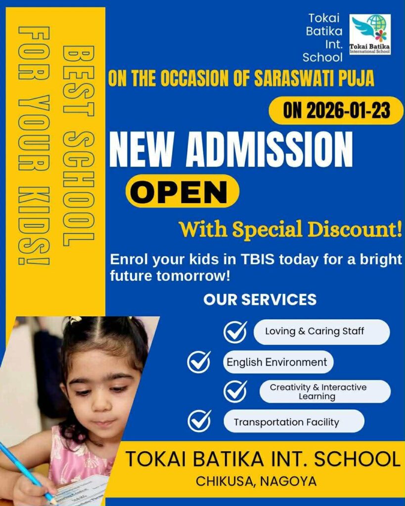 Tokai Batika International School (TBIS) is a Nepali academic institution dedicated to nurturing the next generation. Located in Nagoya, Aichi, the school offers a serene environment for learning and growth. Its goal is to create a culture of joy, achievement, and collaboration, enabling individual success and community contributions.